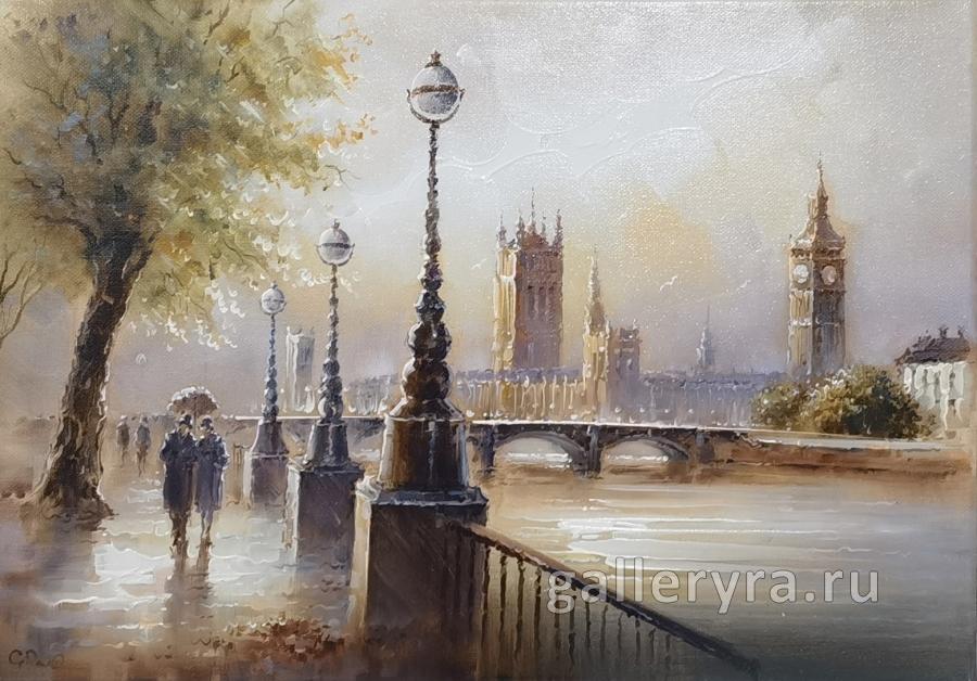 Название картины: Набережная Темзы. Лондон
